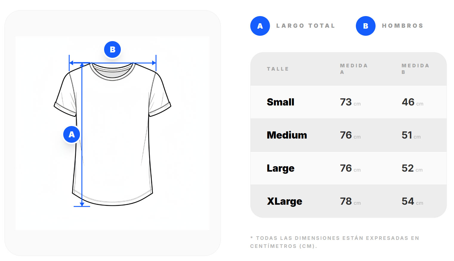 Te dejamos nuestra tabla de medidas, podes compararla con alguna prenda que ya tengas, que te quede bien y comodo. Apoyala en una superficie plana y tomale las medidas, luego podes compararla con nuestra tabla.